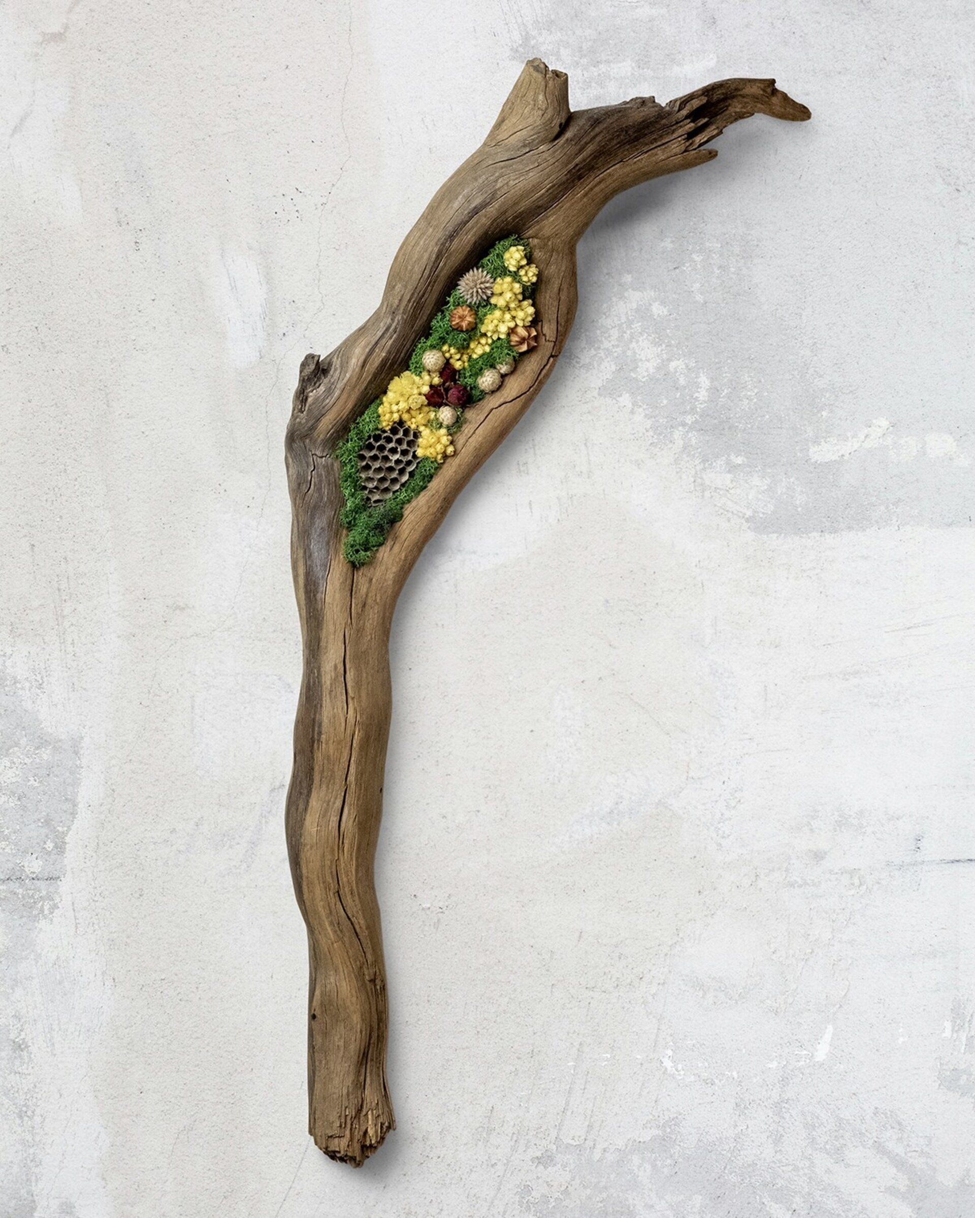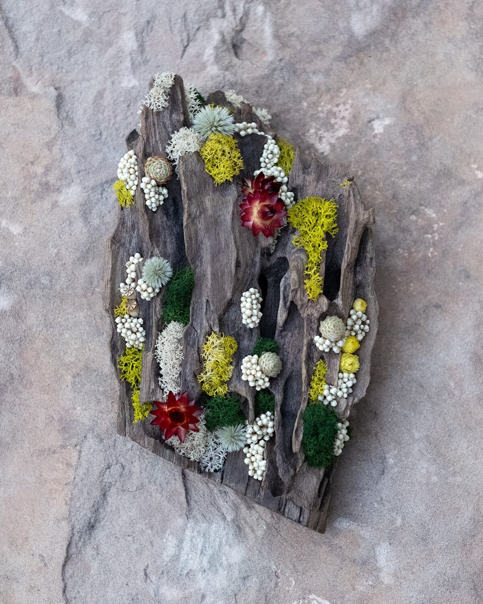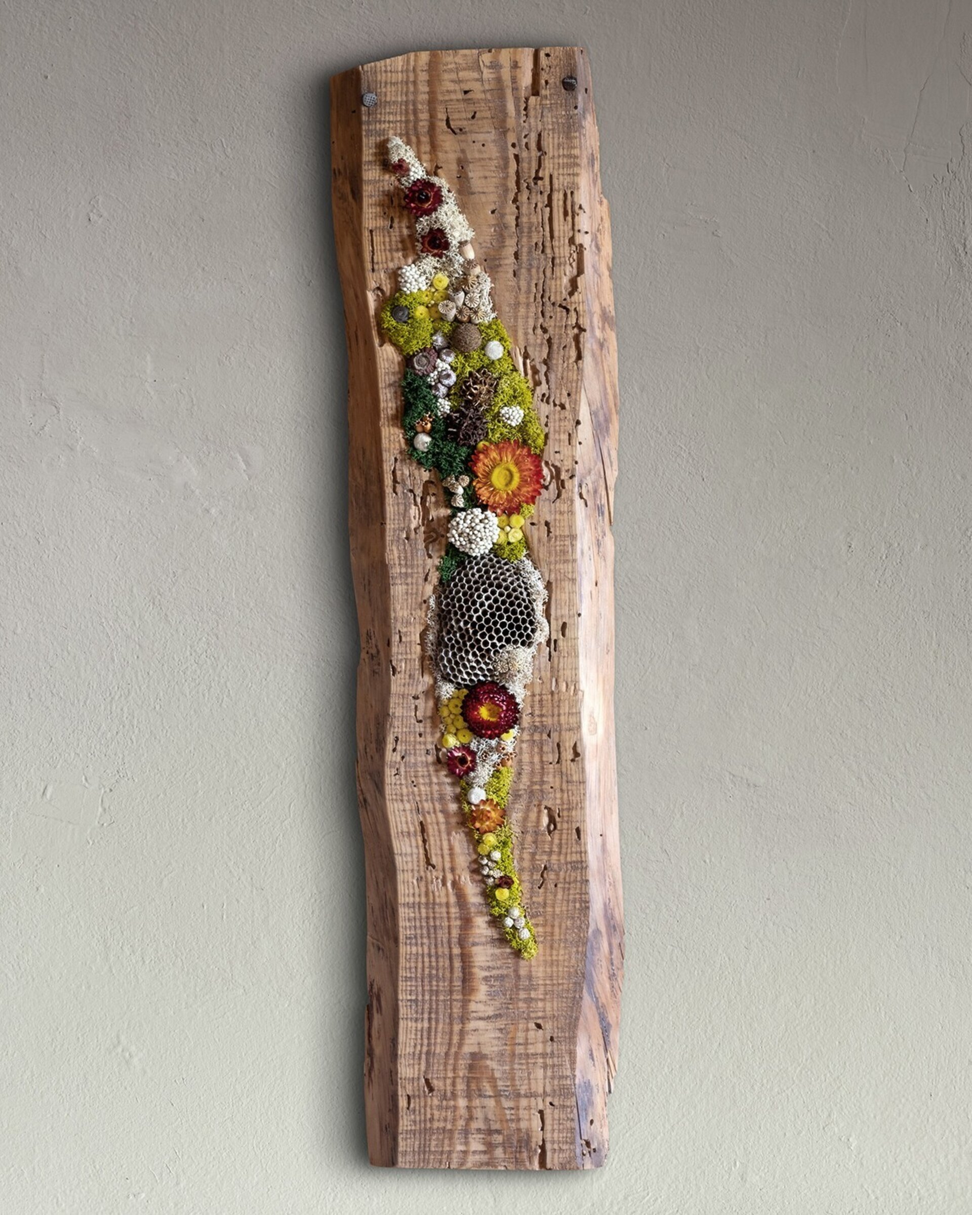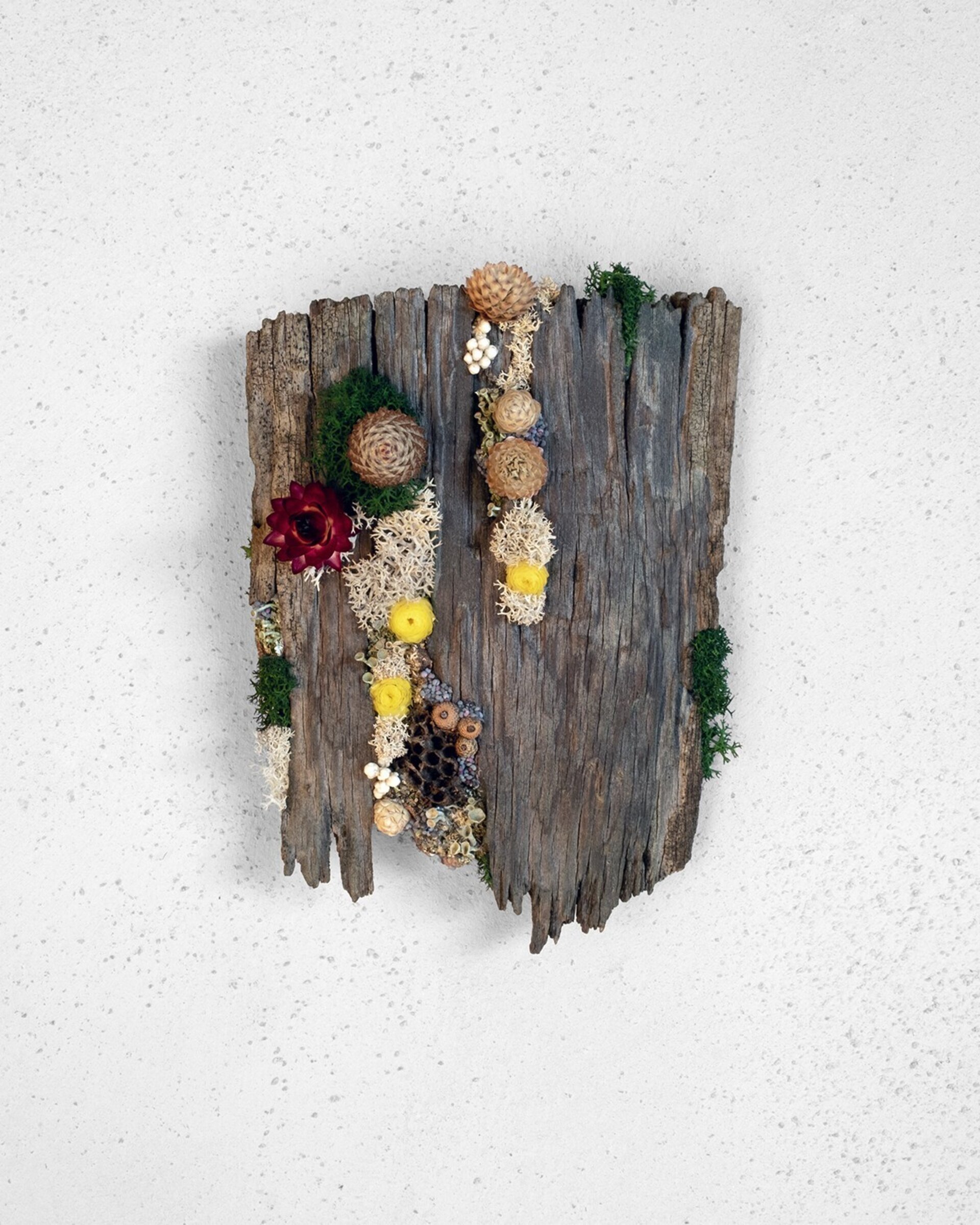 Arte botánico único creado sobre tablones antiguos, ramas y cortezas de árbol. Estas piezas en madera destacan por su carácter escultórico y exclusivo, ideales para quienes buscan decoración auténtica y con alma.