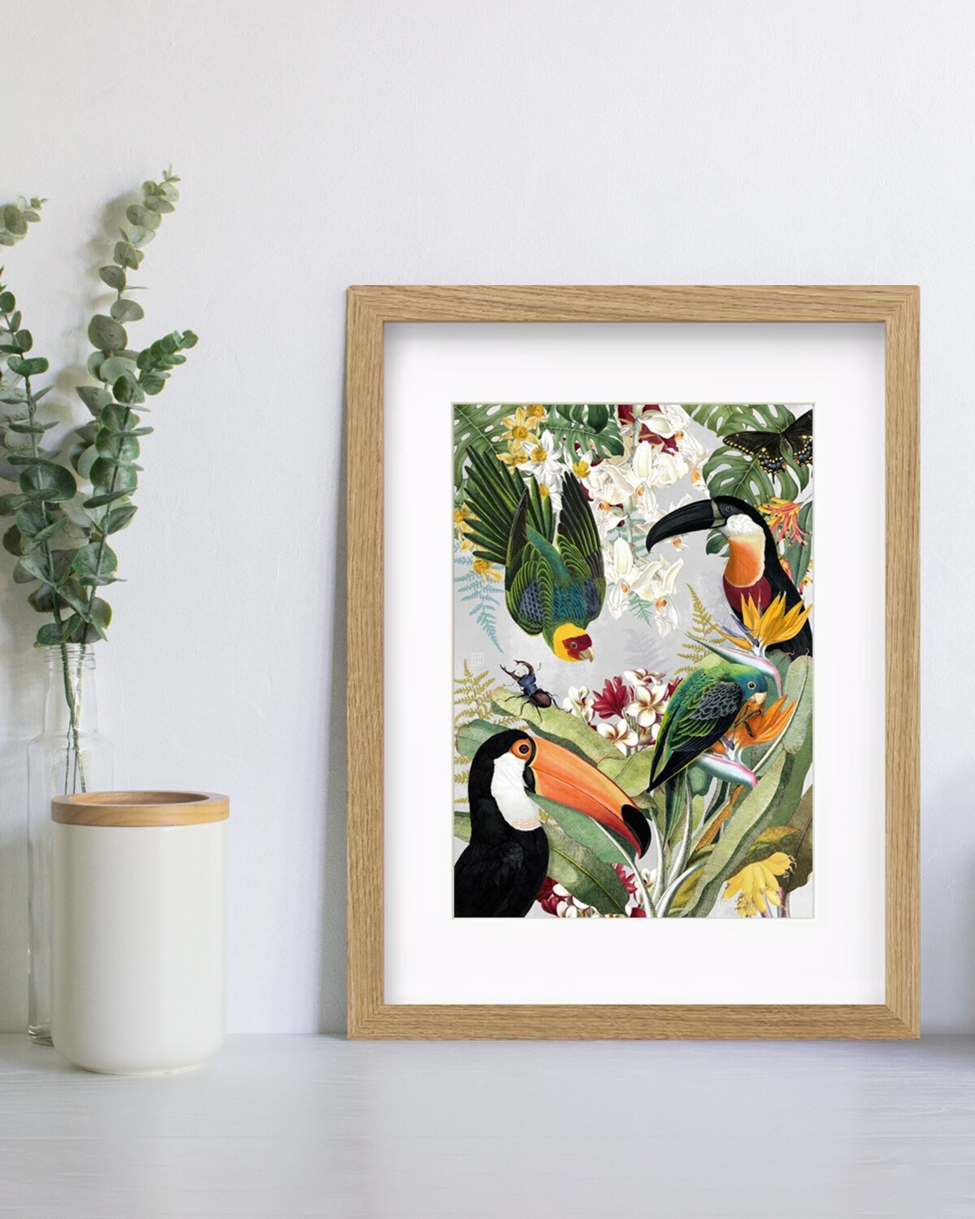 Composiciones creadas mediante collage digital a partir de ilustraciones botánicas y zoológicas del siglo XVIII. Impresas en papel FineArt Hahnemühle Museum Etching.
